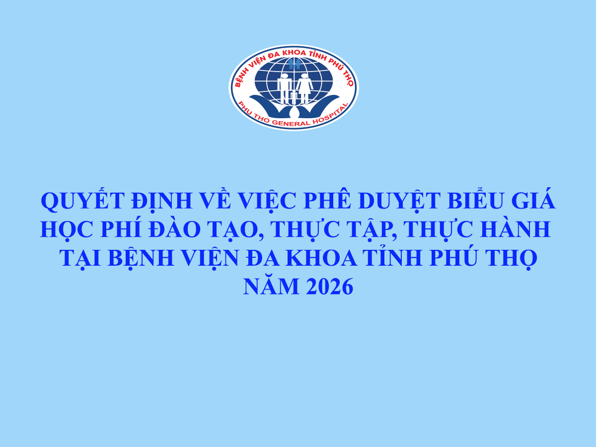 Quyết định về việc phê duyệt biểu giá học phí đào tạo, thực tập, thực hành tại Bệnh viện Đa khoa tỉnh Phú Thọ năm 2026