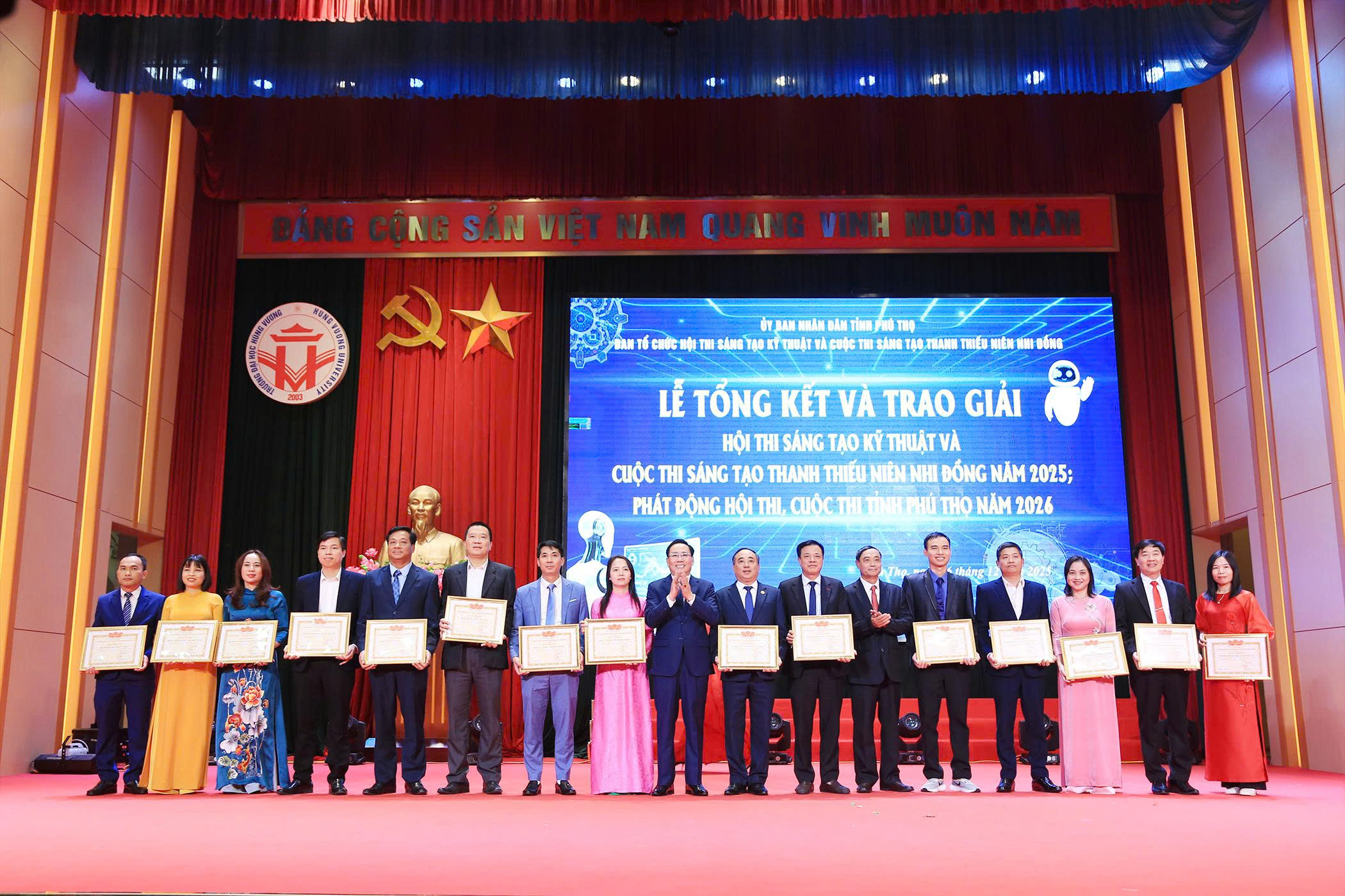 Ngày 06/12, tại Lễ tổng kết và trao giải Hội thi sáng tạo kỹ thuật và Cuộc thi sáng tạo Thanh thiếu niên nhi đồng tỉnh Phú Thọ, Bệnh viện Đa khoa tỉnh Phú Thọ đã vinh dự nhận giấy khen vì có thành tích xuất sắc trong chỉ đạo, tuyên truyền và tổ chức Hội thi sáng tạo kỹ thuật tỉnh Phú Thọ năm 2025. Nhiều đề tài đến từ các nhóm tác giả của Bệnh viện đã xuất sắc được vinh danh với 01 giải Nhất, 01 giải Nhì, 01 giải Ba và 02 giải Khuyến khích.