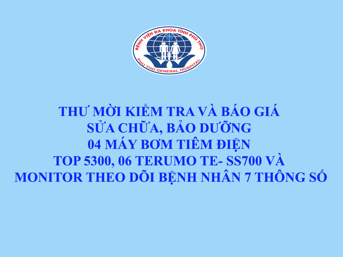 Thư mời kiểm tra và báo giá Sửa chữa, bảo dưỡng 04 máy bơm tiêm điện Top 5300, 06 Terumo TE- ss700 và monitor theo dõi bệnh nhân 7 thông số