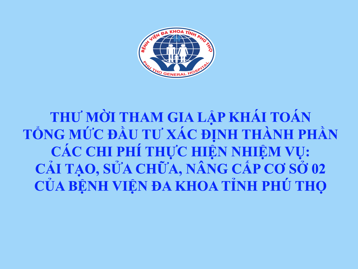 Thư mời tham gia lập khái toán tổng mức đầu tư xác định thành phần các chi phí thực hiện nhiệm vụ: Cải tạo, sửa chữa, nâng cấp Cơ sở 02 của Bệnh viện Đa khoa tỉnh Phú Thọ