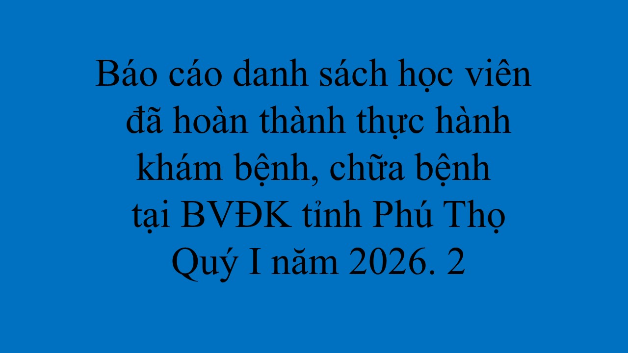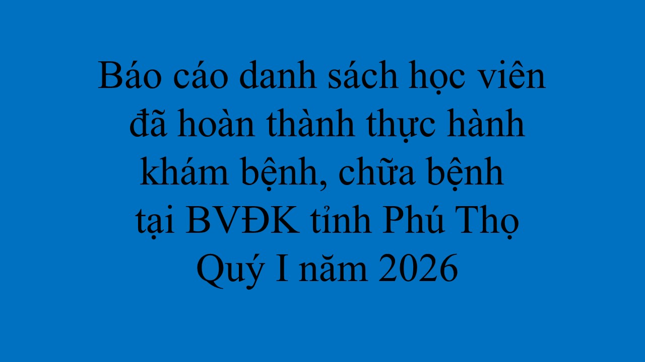 Báo cáo danh sách cán bộ đã hoàn thành thực hành khám bệnh, chữa bệnh tại BVĐK tỉnh Phú Thọ Quý IV năm 2025 Xem