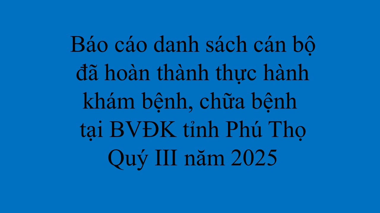 Báo cáo danh sách cán bộ đã hoàn thành thực hành khám bệnh, chữa bệnh tại BVĐK tỉnh Phú Thọ Quý IV năm 2025