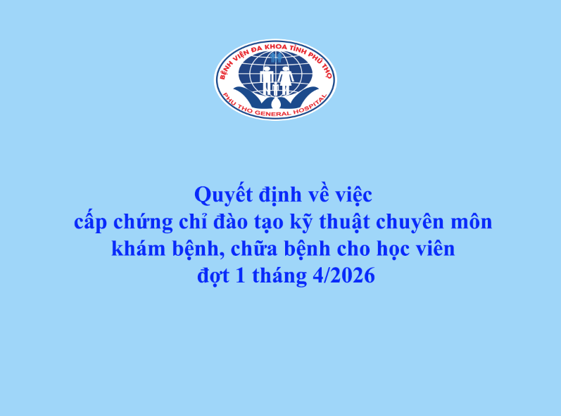 Quyết định về việc cấp chứng chỉ đào tạo kỹ thuật chuyên môn khám bệnh, chữa bệnh cho học viên đợt 1 tháng 4/2026