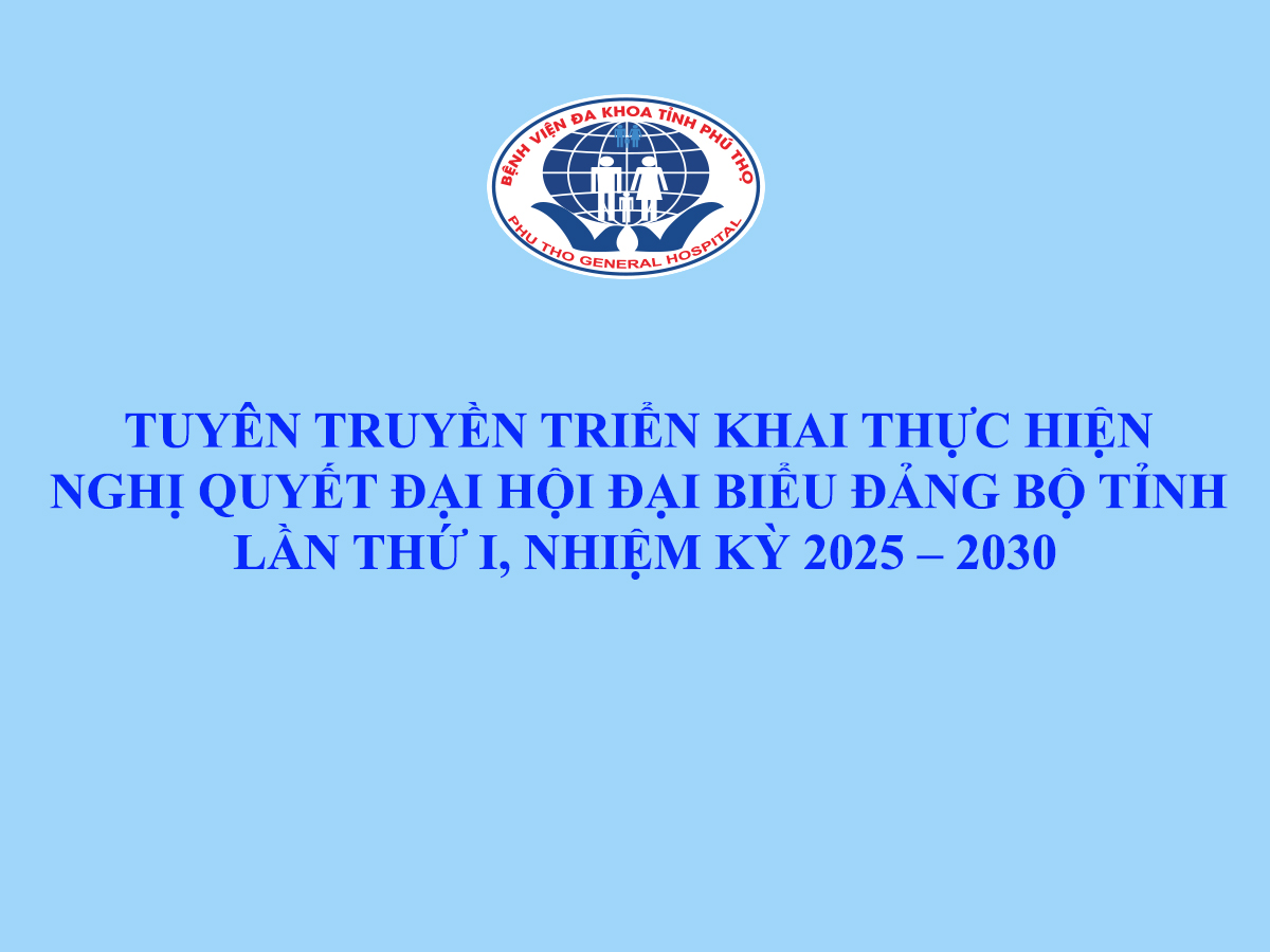 Thực hiện Kế hoạch của Tỉnh ủy về việc Tuyên truyền triển khai Nghị quyết Đại hội đại biểu Đảng bộ tỉnh lần thứ I, nhiệm kỳ 2025 – 2030, Bệnh viện Đa khoa tỉnh Phú Thọ tích cực tổ chức quán triệt, tuyên truyền sâu rộng nhằm tạo sự thống nhất cao về nhận thức và hành động trong toàn thể cán bộ đảng viên, viên chức, người lao động.