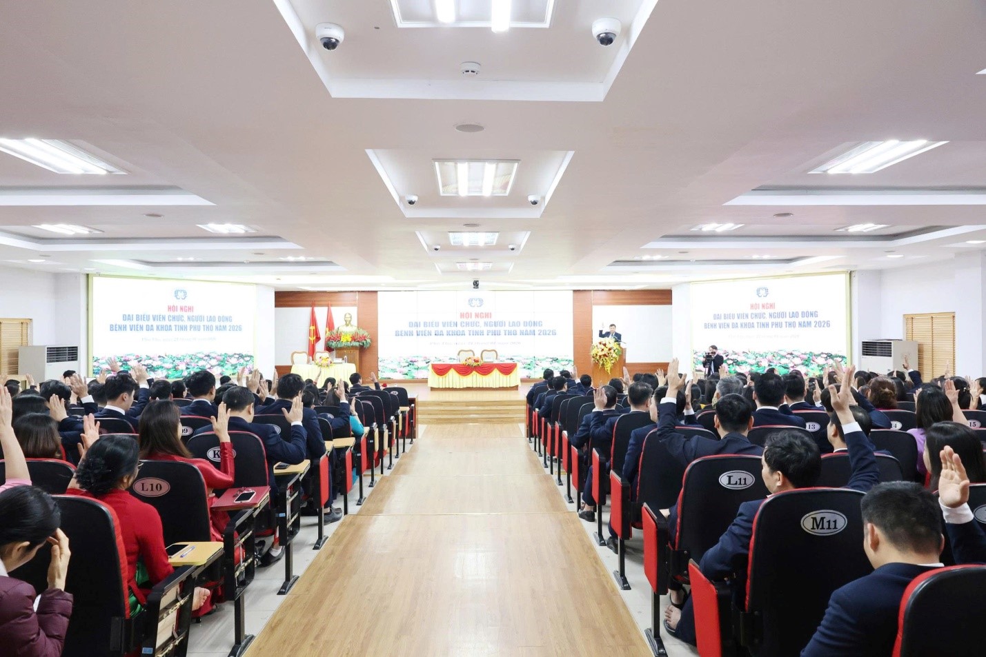 Ngày 21/01/2026, Bệnh viện Đa khoa tỉnh Phú Thọ đã long trọng tổ chức Hội nghị Đại biểu viên chức, người lao động Bệnh viện năm 2026. Hội nghị là hoạt động thường niên có ý nghĩa quan trọng, đánh giá kết quả thực hiện nhiệm vụ năm 2025; lắng nghe ý kiến viên chức, người lao động, đồng thời đề ra phương hướng, nhiệm vụ và phát động phong trào thi đua trong năm 2026.