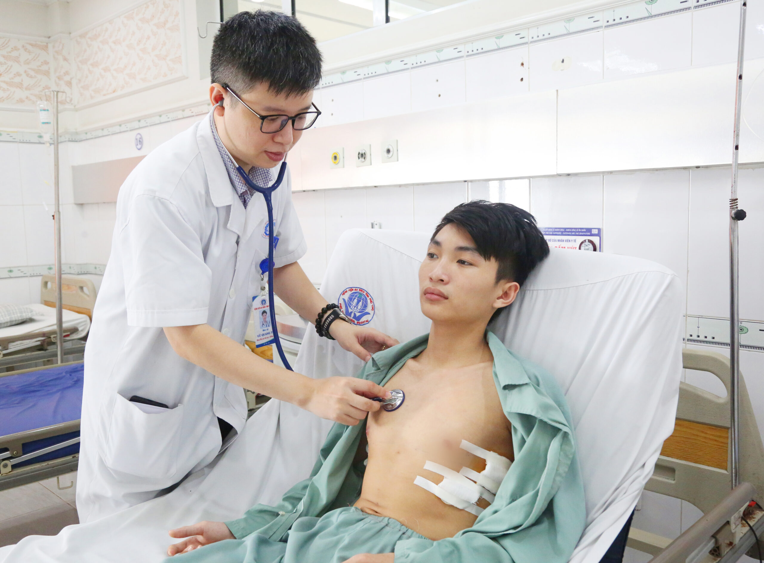 Tại Bệnh viện Đa khoa tỉnh Phú Thọ, H được các bác sĩ tại Khoa Phẫu thuật Tim mạch – Lồng ngực thăm khám kỹ tình trạng tim mạch, huyết áp, nội tiết và kết luận mắc chứng tăng tiết mồ hôi do cường thần kinh giao cảm. Người bệnh được chỉ định phẫu thuật nội soi cắt hạch giao